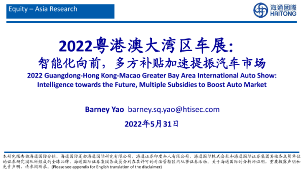 【海通国际】【20220531】2022粤港澳大湾区车展:智能化向前,多方补贴加速提振汽车市场-63页