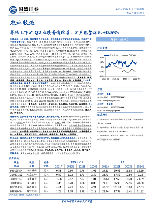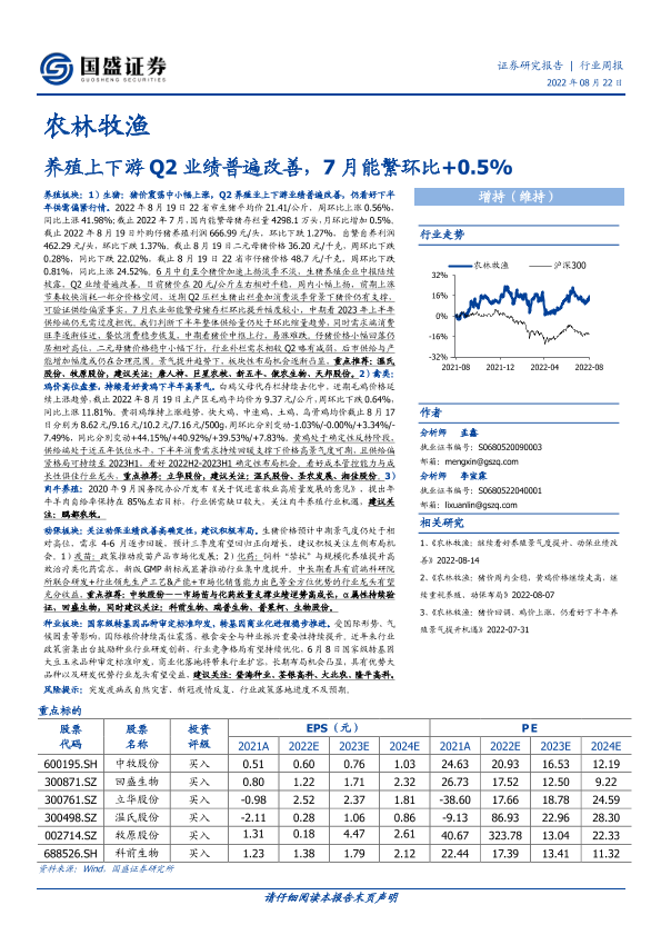【国盛证券】【20220822】20220822-国盛证券-农林牧渔行业周报:养殖上下游Q2业绩普遍改善,7月能繁环比+0.5%-18页
