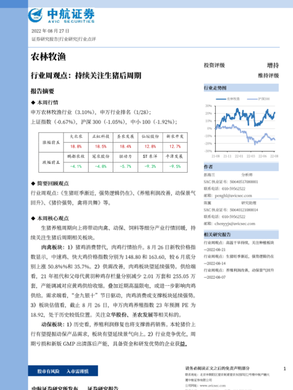 【中航证券】【20220827】20220827-中航证券-农林牧渔行业周观点:持续关注生猪后周期-13页