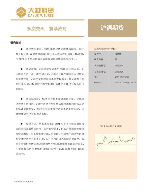 【大越期货】【20220602】沪铜期货月度报告:多空交织,震荡应对-21页
