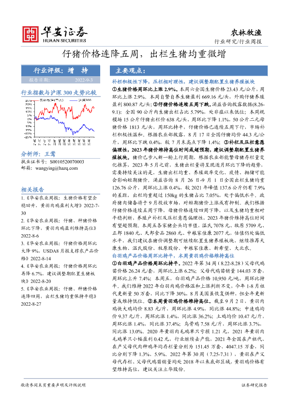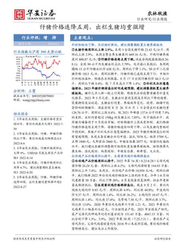 【华安证券】【20220903】20220903-华安证券-农林牧渔行业周报:仔猪价格连降五周,出栏生猪均重微增-44页