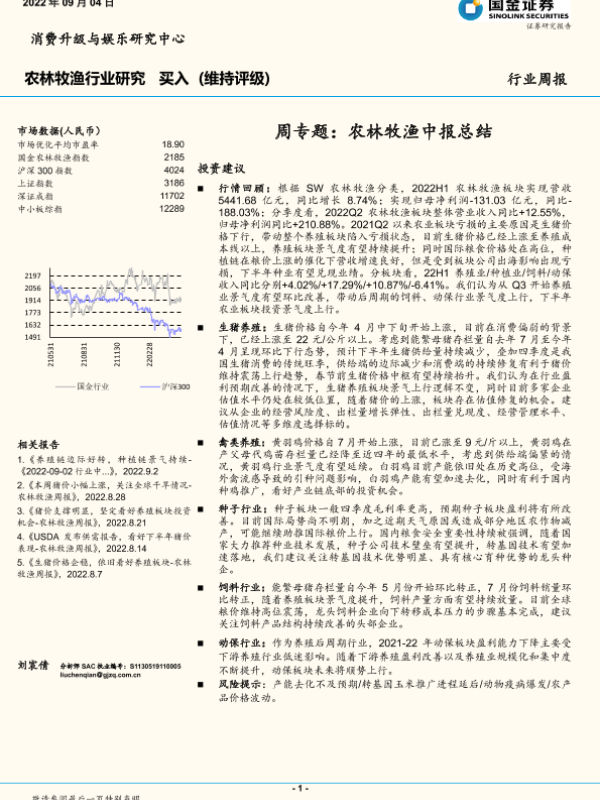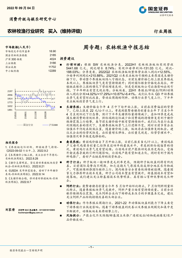 【国金证券】【20220904】20220904-国金证券-农林牧渔行业研究周专题:农林牧渔中报总结-33页