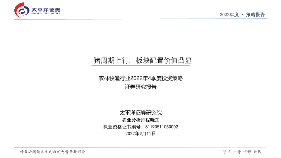 【太平洋证券】【20220911】农林牧渔行业2022年4季度投资策略:猪周期上行,板块配置价值凸显-21页