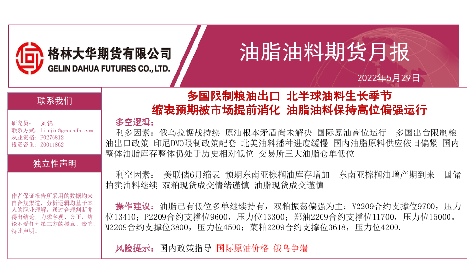 【格林大华期货】【20220529】油脂油料期货月报:多国限制粮油出口,北半球油料生长季节,缩表预期被市场提前消化,油脂油料保持高位偏强运行-31页