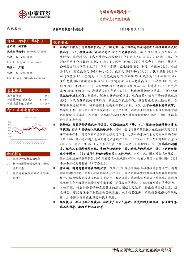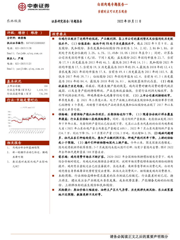 【中泰证券】【20220911】20220911-中泰证券-白羽肉鸡专题报告一:当前时点可以更乐观些-15页