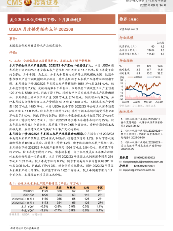 【海通证券】【20220914】农林牧渔USDA月度供需报告点评:美豆及玉米供应预期下修,9月数据利多-5页