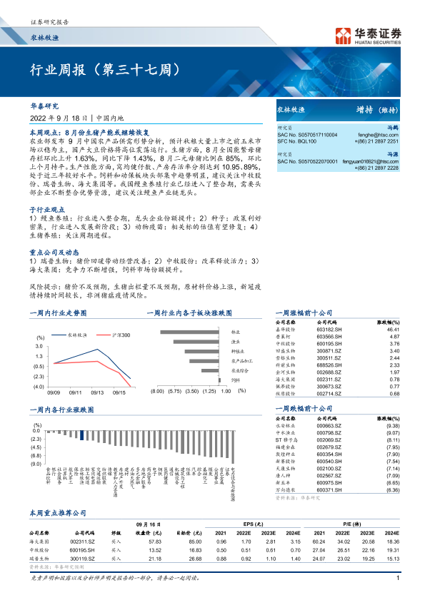 【华泰证券】【20220918】20220918-华泰证券-农林牧渔行业周报(第三十七周)-19页
