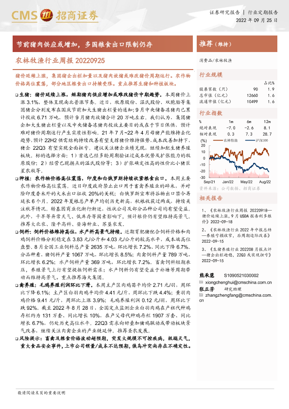【海通证券】【20220925】农林牧渔行业周报:节前猪肉供应或增加,多国粮食出口限制仍存-15页