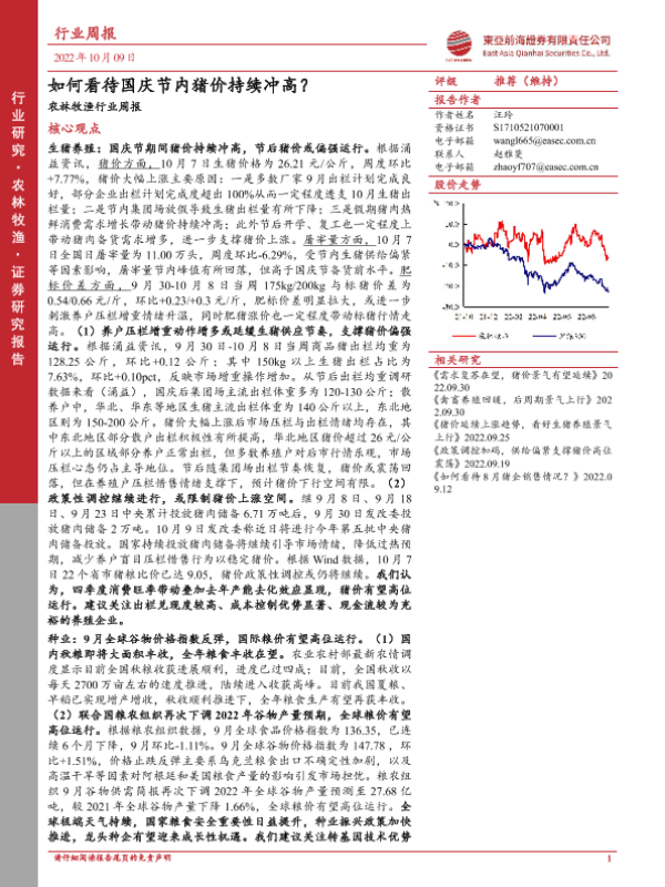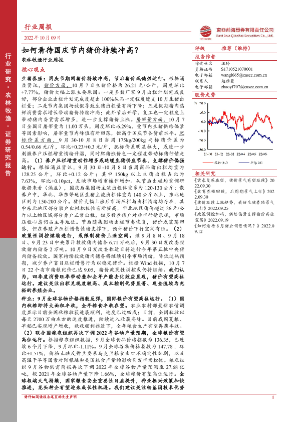 【东亚前海证券】【20221009】20221009-东亚前海证券-农林牧渔行业周报:如何看待国庆节内猪价持续冲高?-19页