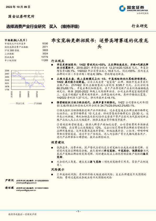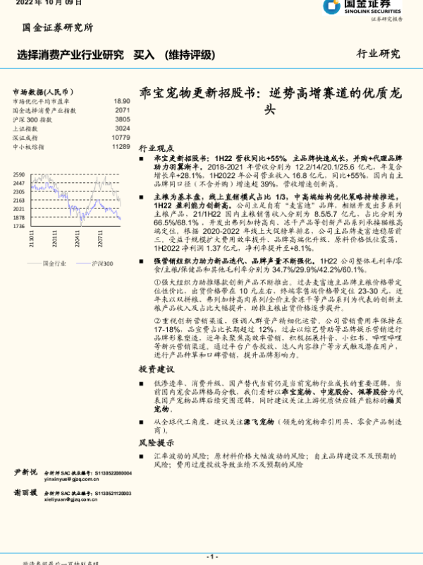 【国金证券】【20221009】选择消费产业行业研究:乖宝宠物更新招股书:逆势高增赛道的优质龙头-10页