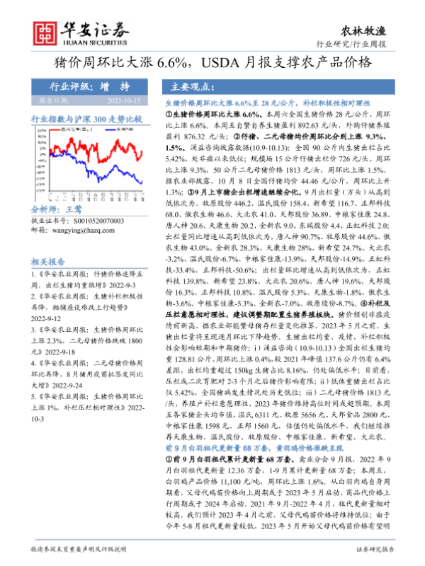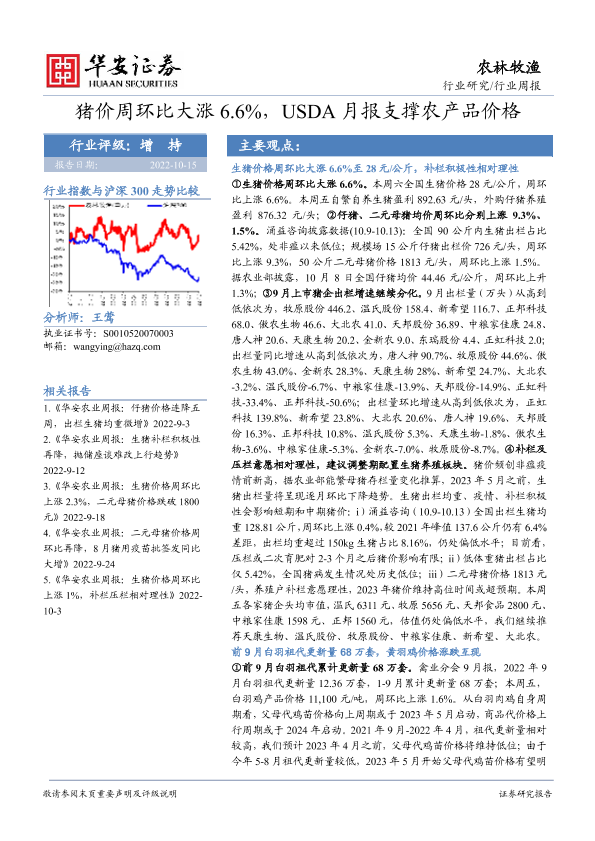 【华安证券】【20221015】20221015-华安证券-农林牧渔行业周报:猪价周环比大涨6.6%,USDA月报支撑农产品价格-39页