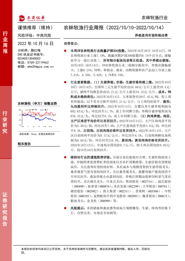 【东莞证券】【20221016】农林牧渔行业周报:养殖盈利有望持续改善-13页