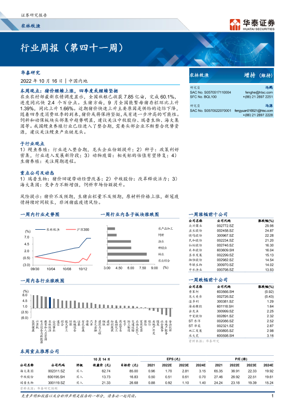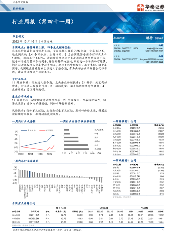【华泰证券】【20221016】20221016-华泰证券-农林牧渔行业周报(第四十一周)-19页