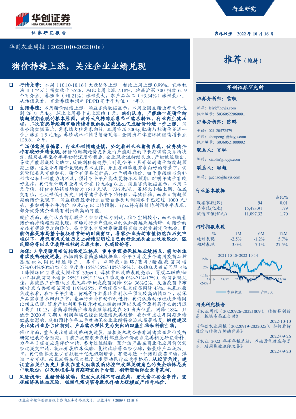 【华创证券】【20221016】华创农业周报:猪价持续上涨,关注企业业绩兑现-31页
