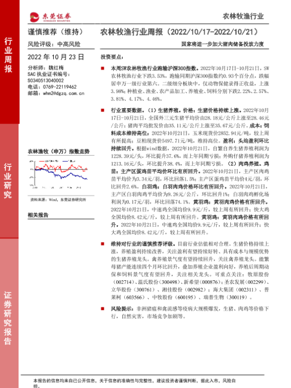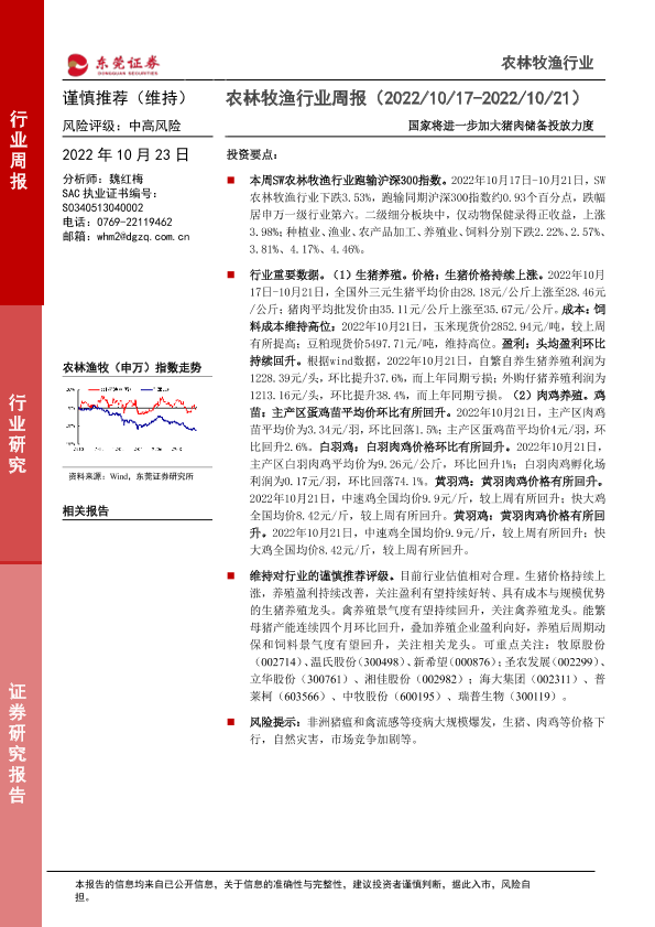 【东莞证券】【20221023】20221023-东莞证券-农林牧渔行业周报:国家将进一步加大猪肉储备投放力度-11页
