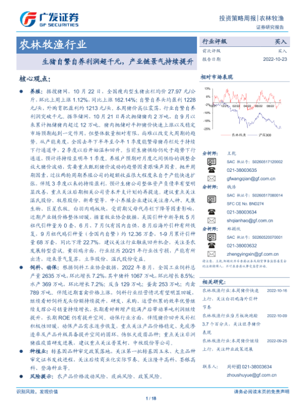 【广发证券】【20221023】20221023-广发证券-农林牧渔行业投资策略周报:生猪自繁自养利润超千元,产业链景气持续提升-18页