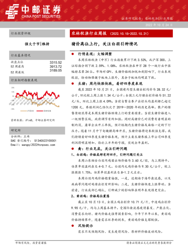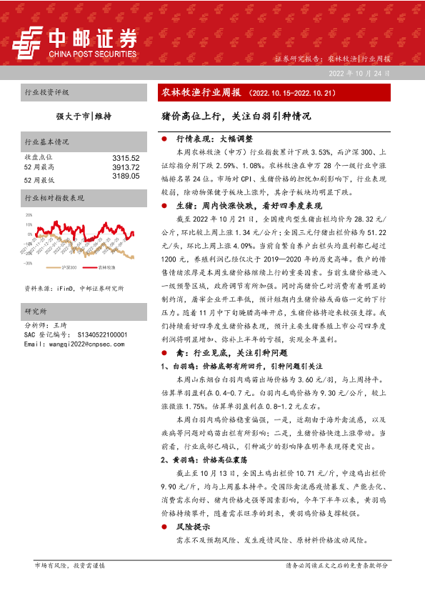 【中邮证券】【20221024】20221024-中邮证券-农林牧渔行业周报:猪价高位上行,关注白羽引种情况-12页