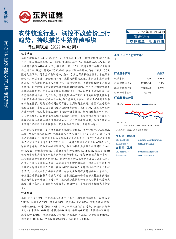 【东兴证券】【20221024】农林牧渔行业周观点(2022年42周):调控不改猪价上行趋势,持续推荐生猪养殖板块-14页
