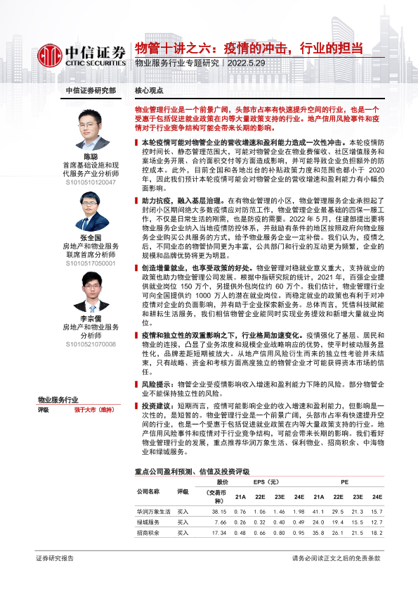 【中信证券】【20220529】物业服务行业专题研究:物管十讲之六,疫情的冲击,行业的担当-18页