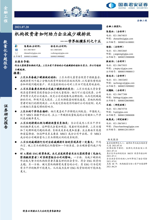 【国泰君安证券】【20210720】机构投资者如何助力企业减少碳排放-23页