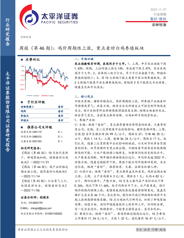 【太平洋证券】【20221127】20221127-太平洋-农林牧渔周报(第46期):鸡价周期性上涨,重点看好白鸡养殖板块-16页