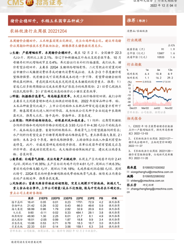 【海通证券】【20221204】农林牧渔行业周报:猪价企稳回升,水稻玉米国审品种减少-14页