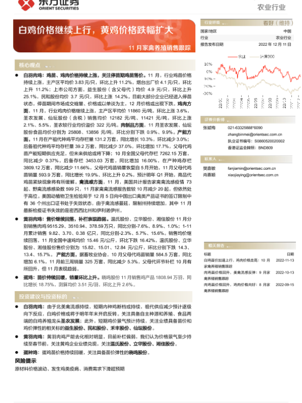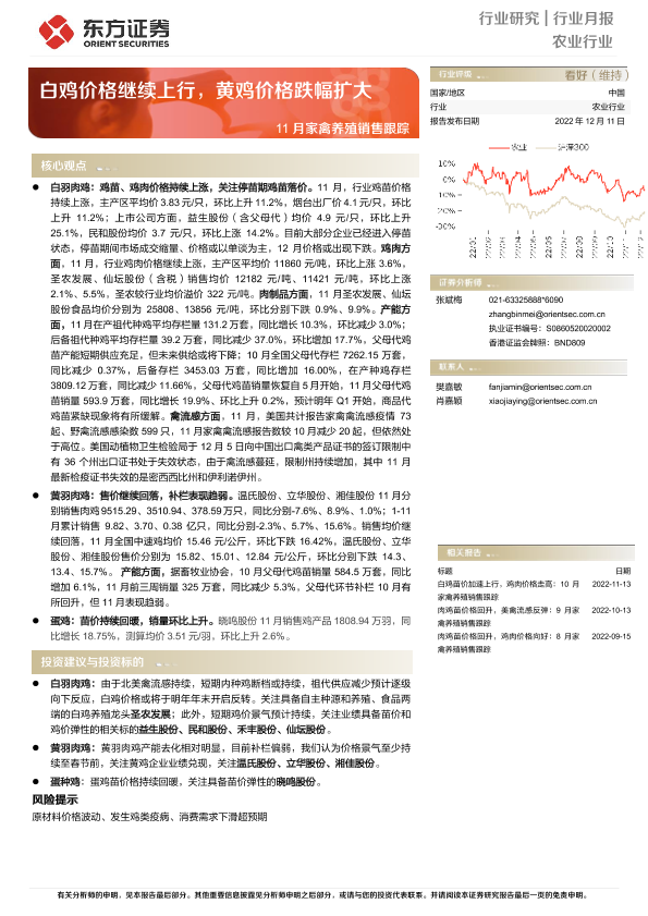 【东方证券】【20221211】11月家禽养殖销售跟踪:白鸡价格继续上行,黄鸡价格跌幅扩大-11页