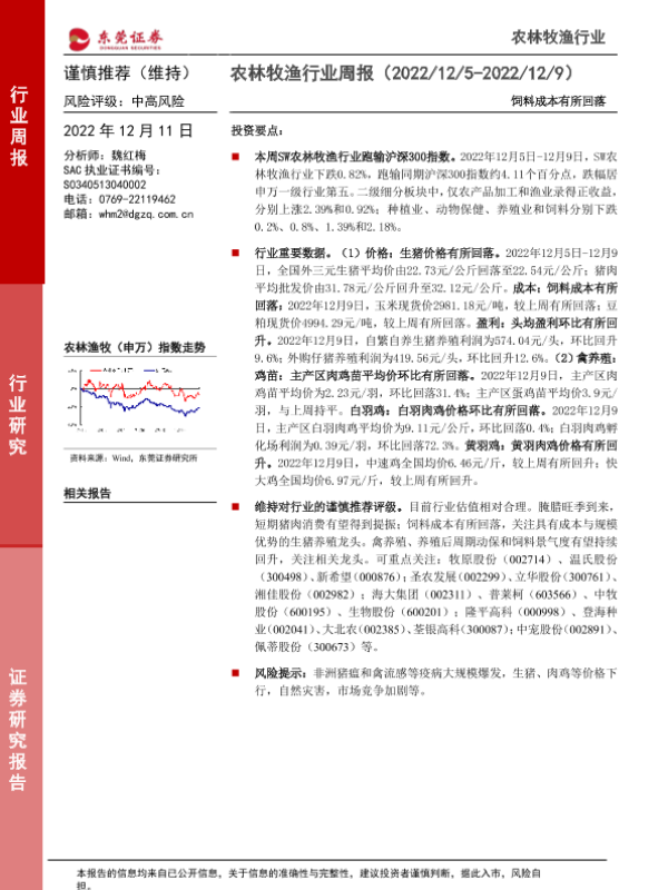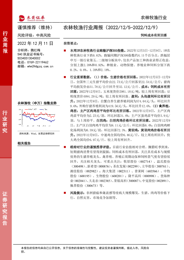 【东莞证券】【20221211】20221211-东莞证券-农林牧渔行业周报:饲料成本有所回落-12页