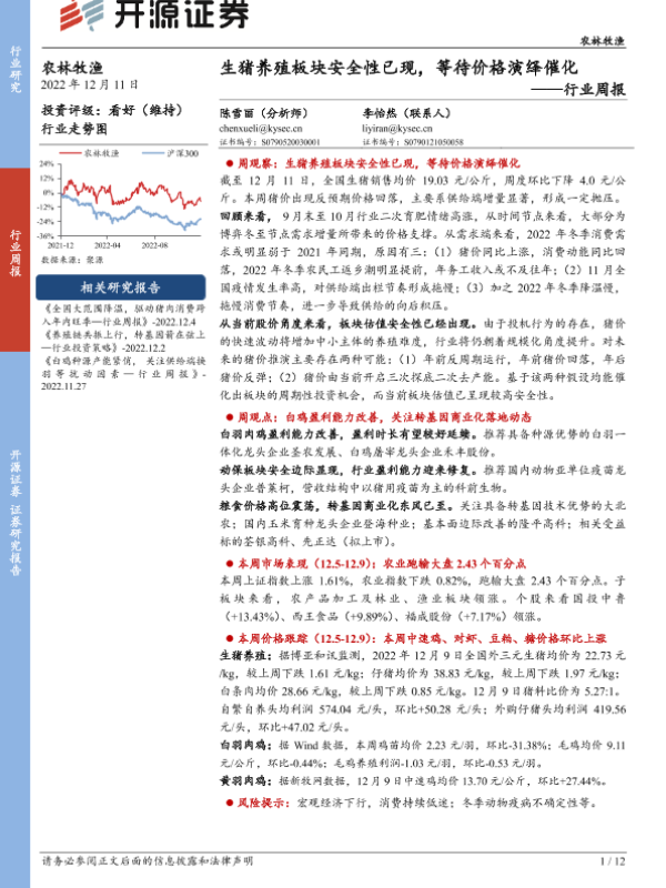 【开源证券】【20221211】农林牧渔行业周报:生猪养殖板块安全性已现,等待价格演绎催化-12页