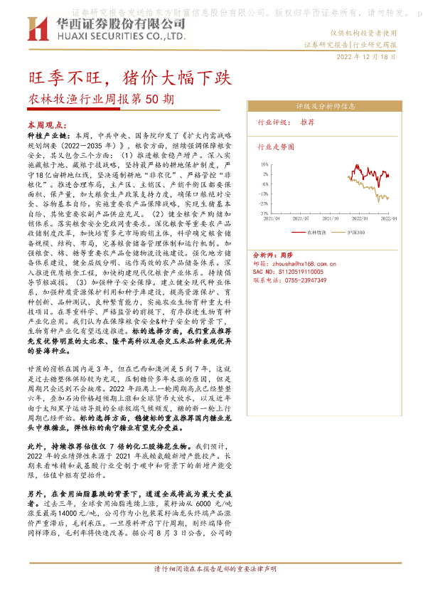 【华西证券】【20221218】农林牧渔行业周报第50期:旺季不旺,猪价大幅下跌-25页
