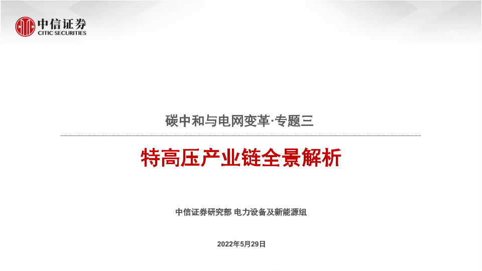 【中信证券】【20220529】电力设备及新能源行业碳中和与电网变革专题三:特高压产业链全景解析-34页