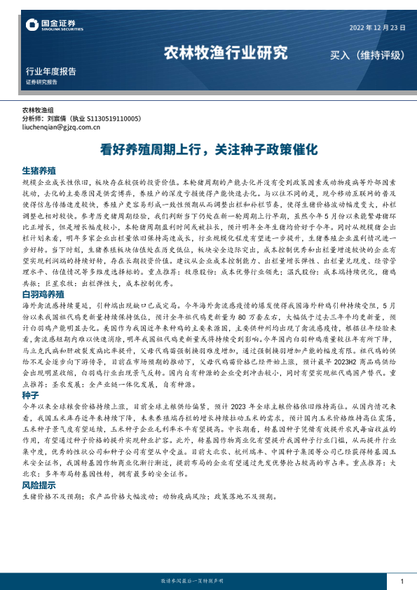 【国金证券】【20221223】20221223-国金证券-农林牧渔行业年度报告:看好养殖周期上行,关注种子政策催化-21页
