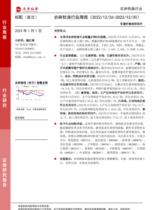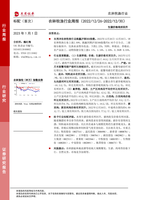 【东莞证券】【20230101】20230101-东莞证券-农林牧渔行业周报:生猪价格有所回升-10页