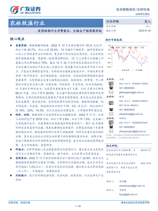 【广发证券】【20230102】20230102-广发证券-农林牧渔行业投资策略报告:疫情短期冲击消费需求,生猪去产能预期再起-24页