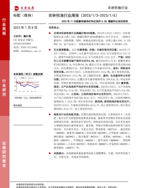 【东莞证券】【20230108】20230108-东莞证券-农林牧渔行业周报:2022年11月能繁母猪存栏环比回升0.2%增幅环比有所收窄-10页