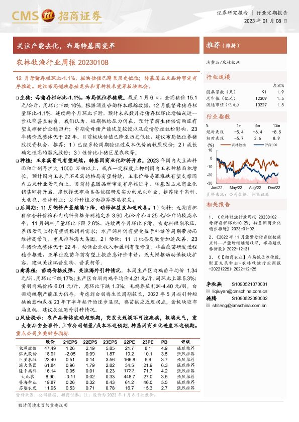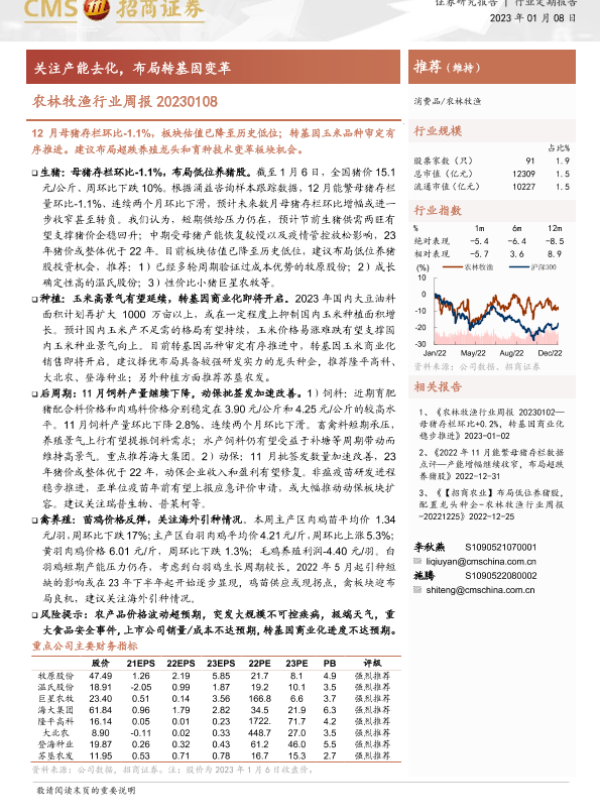 【海通证券】【20230108】农林牧渔行业周报:关注产能去化,布局转基因变革-13页