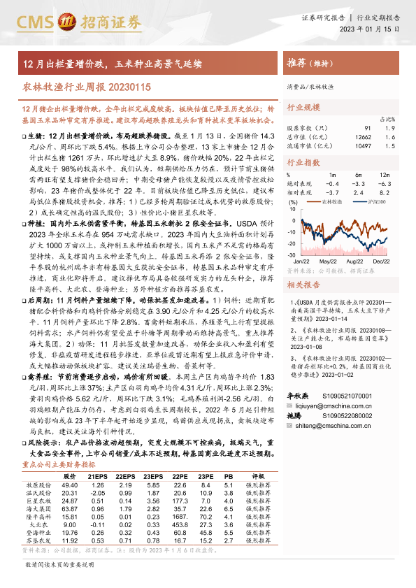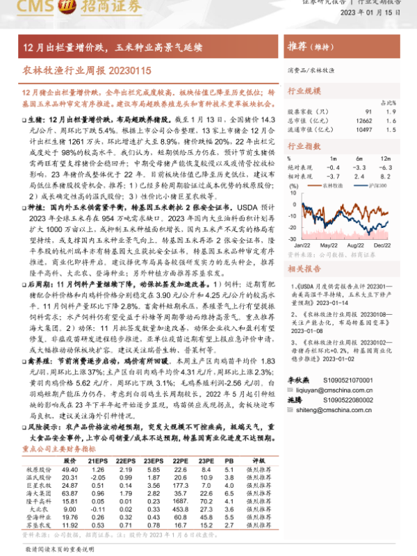 【海通证券】【20230115】农林牧渔行业周报:12月出栏量增价跌,玉米种业高景气延续-15页