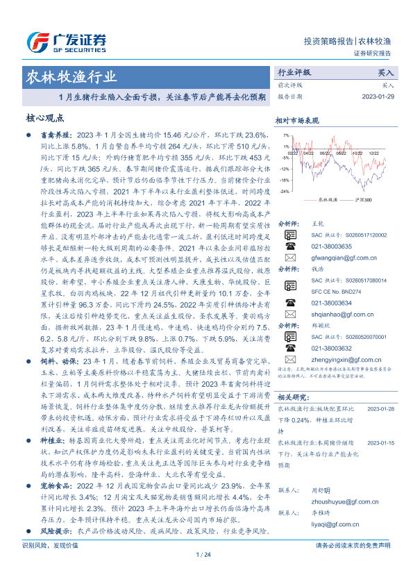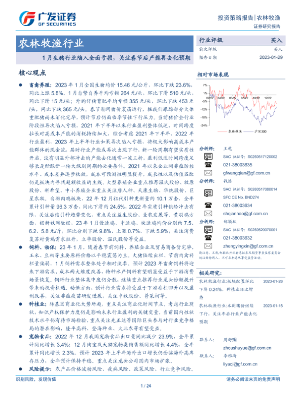 【广发证券】【20230129】20230129-广发证券-农林牧渔行业投资策略报告:1月生猪行业陷入全面亏损,关注春节后产能再去化预期-24页