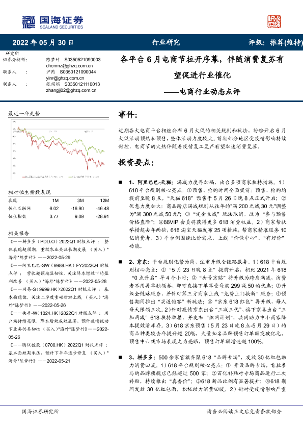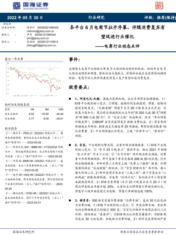 【国海证券】【20220530】电商行业动态点评:各平台6月电商节拉开序幕,伴随消费复苏有望促进行业催化-18页