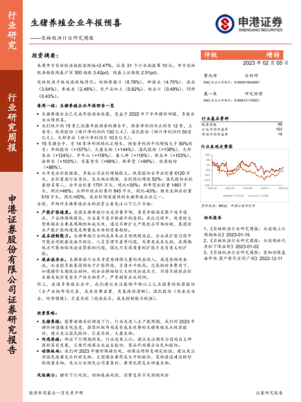 【申港证券】【20230205】20230205-申港证券-农林牧渔行业研究周报:生猪养殖企业年报预喜-13页