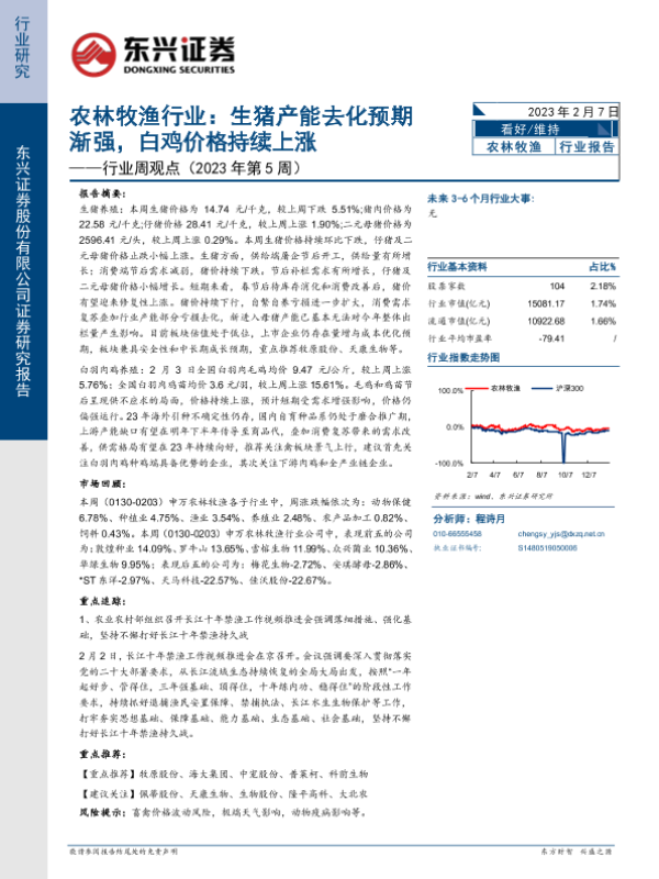 【东兴证券】【20230207】农林牧渔行业:生猪产能去化预期渐强,白鸡价格持续上涨-13页