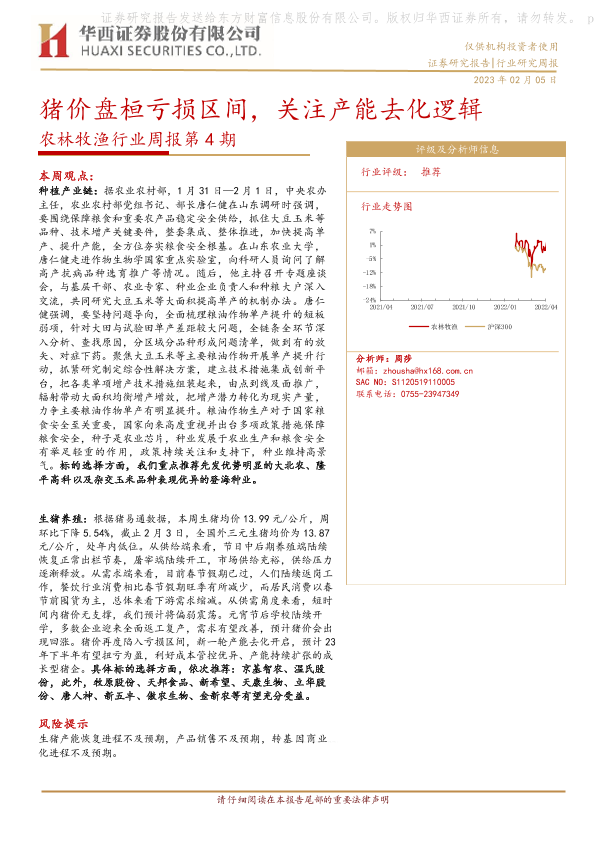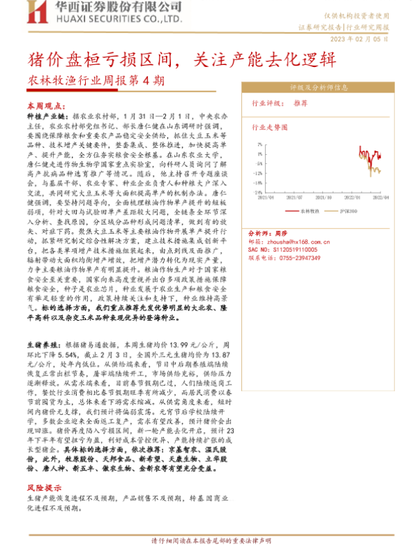 【华西证券】【20230205】20230205-华西证券-农林牧渔行业周报第4期:猪价盘桓亏损区间,关注产能去化逻辑-25页