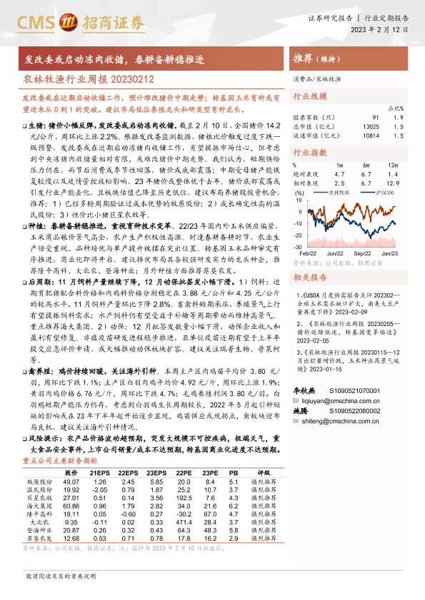 【海通证券】【20230212】农林牧渔行业周报:发改委或启动冻肉收储,春耕备耕稳推进-14页