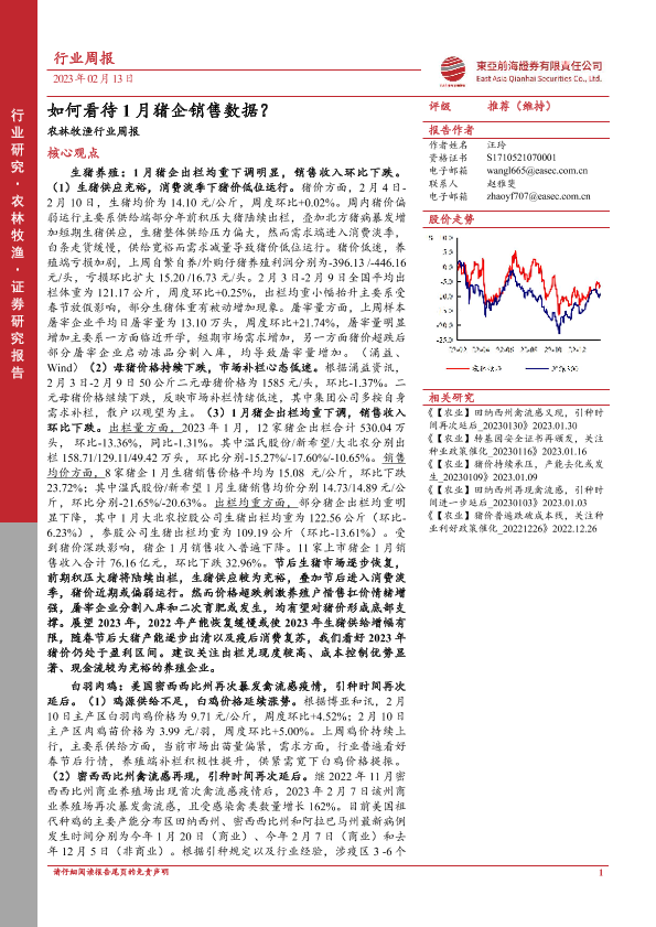 【东亚前海证券】【20230213】20230213-东亚前海证券-农林牧渔行业周报:如何看待1月猪企销售数据?-17页