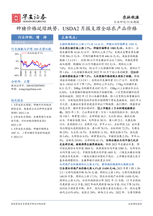 【华安证券】【20230211】20230212-华安证券-农林牧渔行业周报:种猪价格延续跌势,USDA2月报支撑全球农产品价格-41页