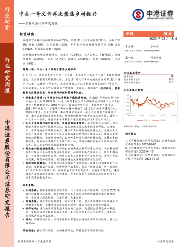 【申港证券】【20230218】20230218-申港证券-农林牧渔行业研究周报:中央一号文件再次聚焦乡村振兴-12页