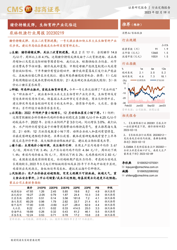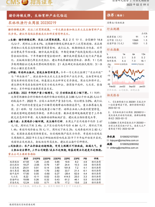 【海通证券】【20230219】农林牧渔行业周报:猪价持续反弹,生物育种产业化临近-14页