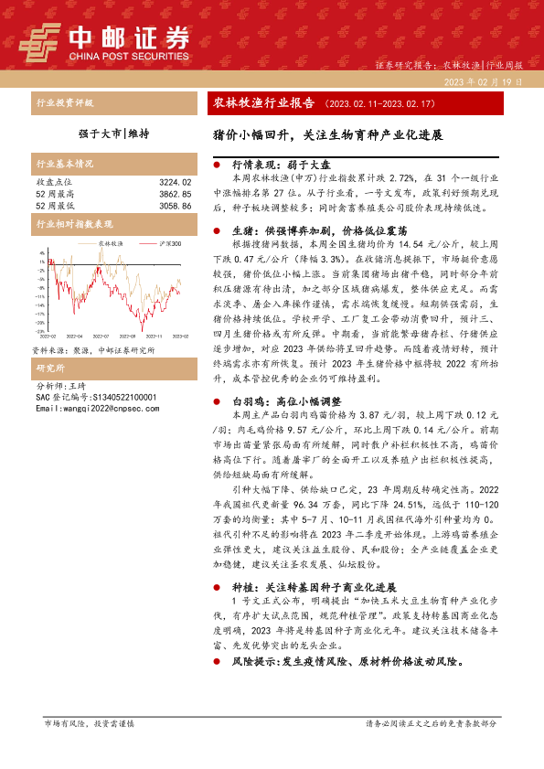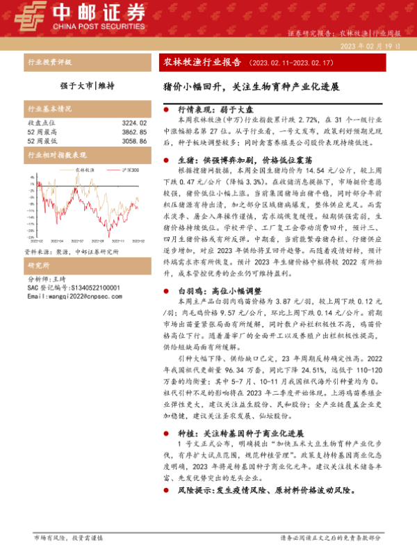 【中邮证券】【20230219】20230219-中邮证券-农林牧渔行业报告:猪价小幅回升,关注生物育种产业化进展-13页