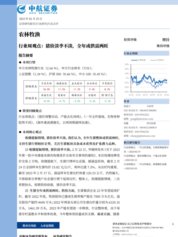 【中航证券】【20230225】农林牧渔行业周观点:猪价淡季不淡,全年或供需两旺-13页