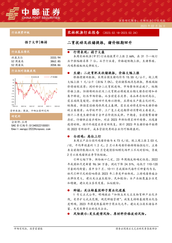 【中邮证券】【20230226】中邮证券-农林牧渔行业报告:二育扰动及收储提振,猪价短期回升-13页